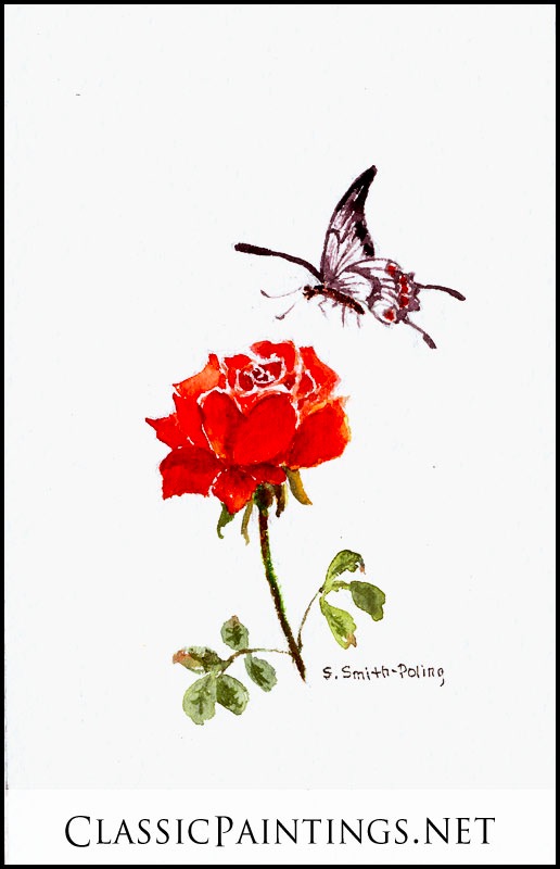 Pure transparent watercolor. During the rainy, dark winter what can be more fun than painting butterflies and flowers. Inspired by a visit to my daughter, Victoria in China while she was studying at the University of Chengdu.