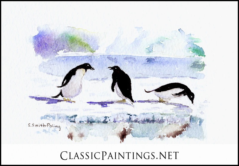 Pure, transparent watercolor. Inspired by my deployment to ChristChurch, New Zealand and down to McMurdo, Antarctica. Penguins are fascinating.