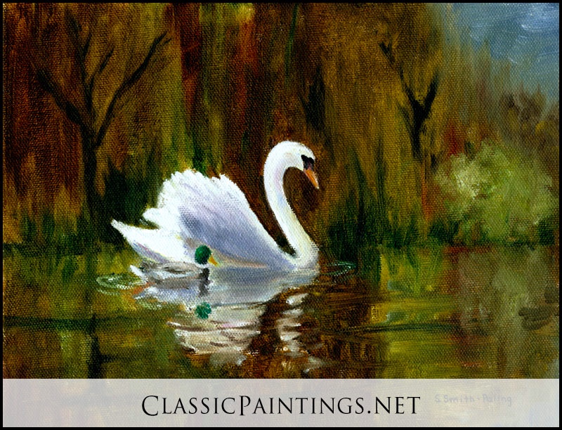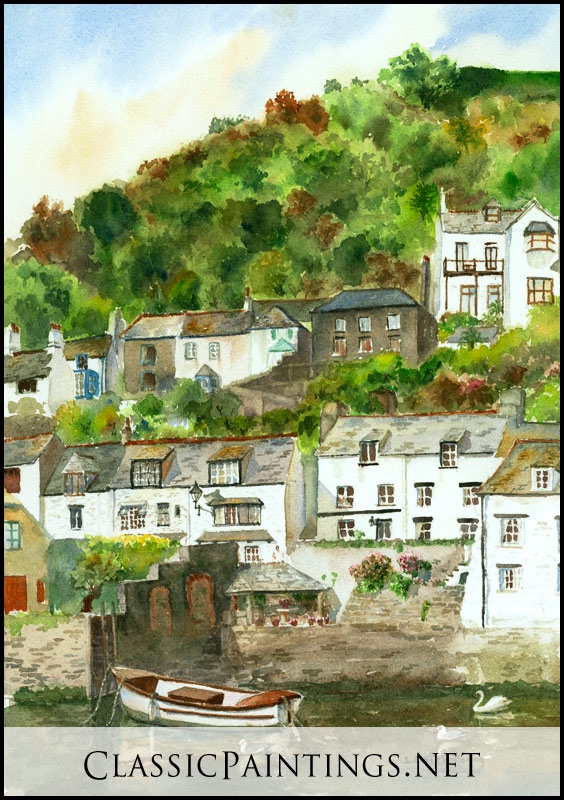 W/C Polperro, Cornwall. I painted this scene of the site of the old kiln. The apartment we rented, “Fairview Cottage”, can be seen just behind the small shelter. I stood in front of the fish market to paint. There was always this lone swan. I wondered if it had lost its mate. This morning was a high tide.