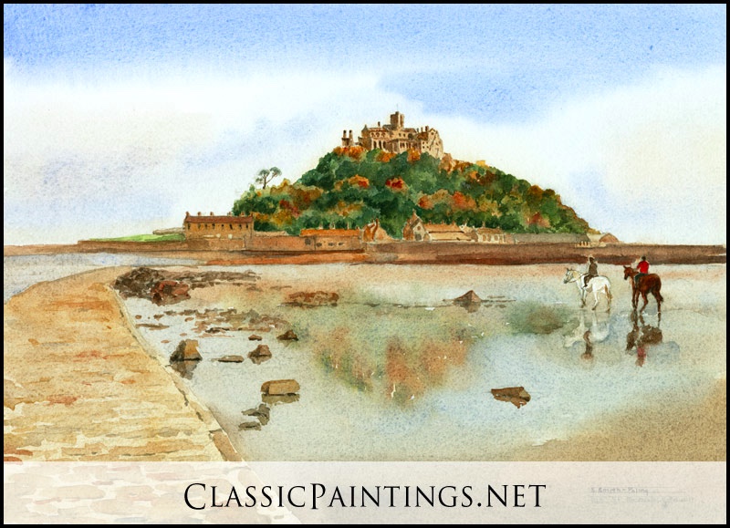 W/C St. Michaels Mount, Cornwall. October with the tide going out and a couple of horseback riders made this a lovely scene. Over 20 years ago I painted it with my father, Craig Smith. Now, I spent the day climbing and visiting the castle.
