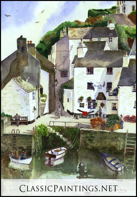 My husband, Mitch and two friends Rod and Marilyn rented an apartment for a month so Rod and I could paint! It was fantastic. Everywhere one turns in Polperro there is wonderful subjects to paint. I was fascinated watching the seagulls. Everyday when the tide was out, they would bathe in the fresh water of the river Pol that flows through Polperro. Polperro is a 13th century fishing village, originally belonging to the ancient Raphael manor mentioned in the Domesday Book. Fishing has been the principal occupation of its inhabitants for centuries, and pilchards were often caught in abundance to be sold far and wide. When Britain was at war with its neighbours in the 18th century, duty on many goods was increased considerably, encouraging the Polperro fishermen to smuggle goods such as tea, gin, brandy and tobacco across from Guernsey. The man who arrived in Polperro to manage the smuggling trade was Zephaniah Job. He changed the life of the village, for he was to become the greatest single benefactor in its long history. Over the years, Job acted as advisor, accountant and banker to many of the inhabitants as well as the local gentry. He even hired lawyers when the Polperro smugglers appeared in court. Privateering by Polperro boats, licenced by the Admiralty to attack and capture enemy ships, also brought great wealth to many Polperro families during the latter half of the 18th century. The privateers often combined official business with smuggling, returning with cargoes of contraband to sell ashore