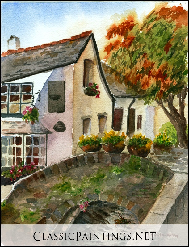 W/C Boscastle is thought to be the site of King Arthur’s castle. This charming cottage was at a small harbor. The English cottage gardens are a delight to behold. They always appear to be so casual (easy) and yet require much diligence to maintain. The children were enamored with this area. My father and I did numerous painting trips through Cornwall and Devon.