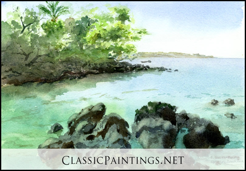 Archival Print from original watercolor. Spencer Beach and park are a beautiful swimming and snorkeling beach on the west side of the Big Island of Hawaii. I took some time to paint just prior to giving a lecture on Wilderness Medical Evacuation