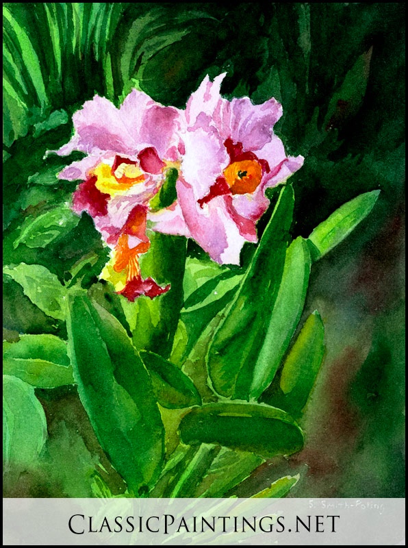 Archival Print from original watercolor. After walking across lava flats, seeing tunnels, the beautiful fish ponds appeared. Well worth the very hot walk. The black/red volcanic rock really gives off the heat. There are also interesting petroglyphs near by. The mirror like reflection just asked to be painted!